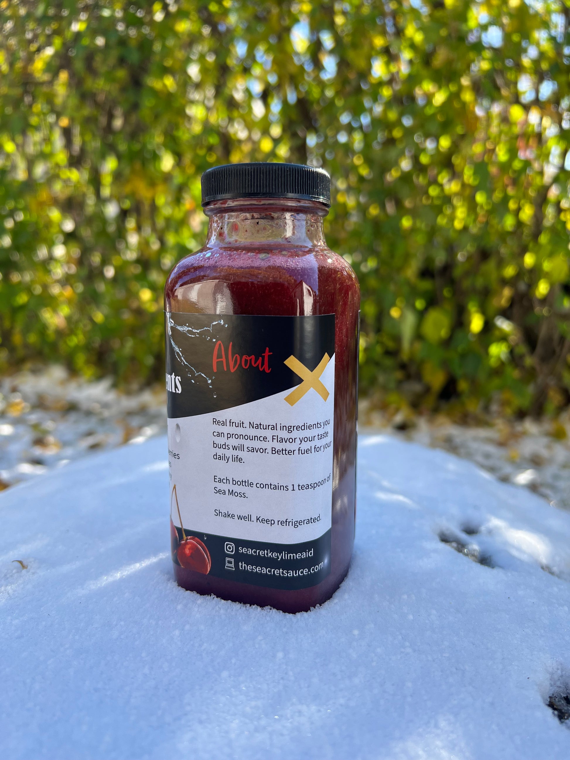 INGREDIENTS: Coconut water, key limes, sea moss, organic raw honey, organic agave, cherries, blueberries, strawberries, ginger